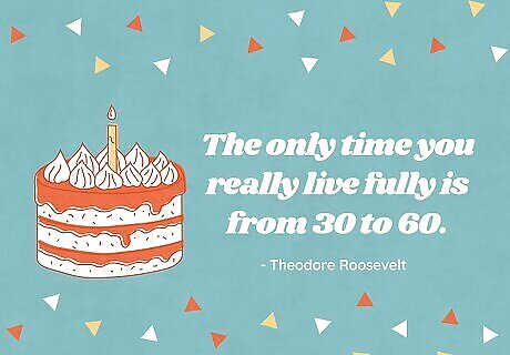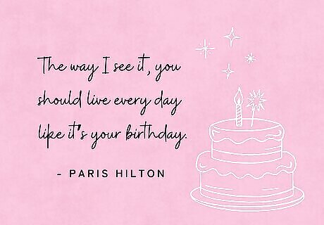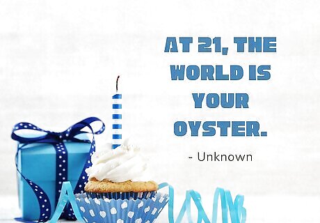 Encourage your friend to take on the world with an inspirational quote. Want to remind your friend that they’re strong, brave, and capable of anything? Share an inspirational quote about dreaming big and pushing forward when things get tough. Here are some great options to give them a boost of confidence on the big day: “No wise man ever wished to be younger.” — Jonathan Swift “Every age can be enchanting, provided you live within it.” — Brigitte Bardot “Life is what happens to us while we are making other plans.” — Allen Saunders “The way I see it, you should live every day like it’s your birthday.” — Paris Hilton “To live is the rarest thing in the world. Most people exist, that is all.” ― Oscar Wilde “As soon as I saw you I knew a grand adventure was about to happen.” — A.A. Milne “Life isn't about finding yourself. Life is about creating yourself.” — George Bernard Shaw “Today is the oldest you have been and the youngest you will ever be again. Make the most of it!” — Nicky Gumbel “With each birthday, you get to decide whether to mark it as the end of your greatest days or the beginning of your finest hours.” — Oprah Winfrey “Old age: A great sense of calm and freedom. When the passions have relaxed their hold, you may have escaped, not from one master but from many.” — Plato
