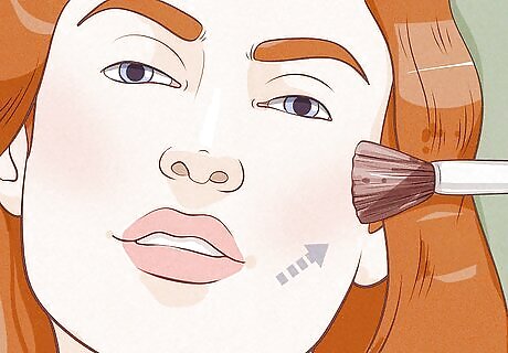 Put on some highlighter or lighting powder. Choose a shimmery highlighter or lightening powder that's a few shades lighter than your skin tone. Use a powder brush to apply it to the areas of your face that receive the most sunlight: the nose bridge, forehead, chin, and cheekbones. This is typically a part of the contouring routine, but if you leave off the shadow, you'll get a simple, fresh-faced look. A light dusting across your face will let light pick up on your face more effectively, which in turn will have a freshening effect on the way you look.