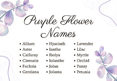 Research purple plants and flower varieties for the perfect name. Classic purple flowers include iris, violet, and lavender, but there are so many options to choose from! Here are flowers and plants that come in hues of violet, lilac, or deep purple: Allium - Latin word for “garlic.” Anemone - Greek name meaning “daughter of the wind.” Aster - Amharic name meaning “star.” Aubrieta - English name meaning “logical” and “fun-loving person.” Azalea - Arabic name meaning “democracy.” Calfuray - Native American name meaning “purple flower.” Calla - Greek name meaning “most beautiful.” Clematis - Greek name meaning “a climbing plant.” Crocus - Greek word for “saffron.” Fuchsia - German flower name for a plant that has pinkish-red-purple colored blooms. Gentiana - Latin and Greek origins; named after a star-shaped flower. Hyacinth - Greek name meaning “flower.” Ianthe - Greek name meaning “purple flower.” Ibolya - Hungarian name meaning “violet color” or “violet flower.” Io - Greek name meaning “a flower” or “violet.” Iolanthe - Greek name meaning “violet flower” or “modest.” Ione - Greek name meaning “violet flower.” Iris - Greek name meaning “rainbow.” Jolan - Hungarian name meaning “violet blossom” or “good girl.” Jolanta - Greek name meaning “violet flower.” Lavender - English name meaning “purple flower.” Lilac - Persian name meaning “bluish” or “lilac.” Myrtle - Greek name meaning “a flower,” “symbol of victory,” or “a tree.” Orchid - Latin name meaning “a flower.” Pansy - Greek name meaning “a flower.” Petunia - French name meaning “tobacco plant.” Rose - Latin name meaning “a flower.” Salvia - Latin word for “sage.” Sireli - Estonian name meaning “lilac flower.” Temenuzhka - Bulgarian name meaning “violet flower.” Thistle - English name meaning “thistle,” which is a vibrant purple plant. Violet - Latin name meaning “purple” or “violet flower.” Viorel - Romanian name meaning “sweet violet flower.” Wisteria - English name meaning “Wister’s flower.” Zinnia - Latin name meaning “colorful flowers.”