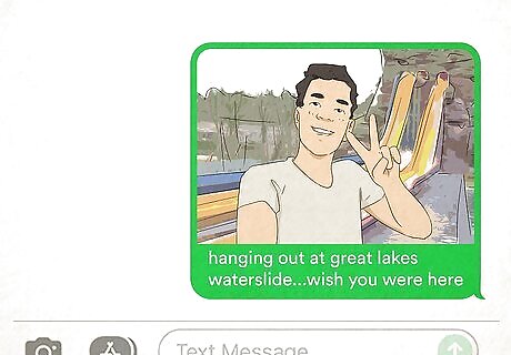 GIFs are extra fun! Send along a funny picture of yourself, or a cool graphic (like a GIF). Add audio of your favorite song, or weird sound effects, for added fun. Audio or picture messages are bound to get you both talking and laughing. This is a great way to wrap up a fun conversation, too. Leaving your friend with a lasting image will make that friend eager to pick up your next texting conversation. Just make sure you’re texting someone with a phone that is able to accept photos, sound effects, or other fancy additions. You don’t want to confuse your friend or make your friend feel left out by sending along a video or an image your friend can’t see.