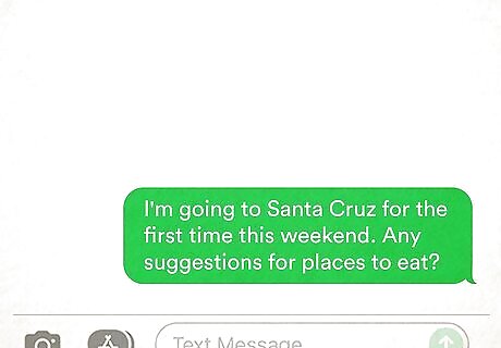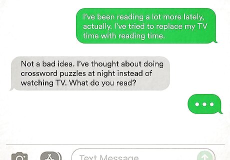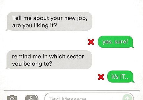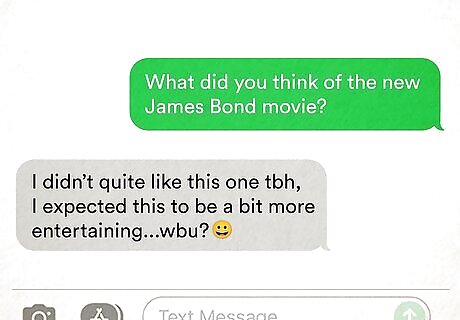 It may be much easier on your thumbs than taking the time to type out a real message, but one word can seldom start a conversation. Whether you’re asking a one-word question or giving a one-word response, this can’t lead to a very stimulating conversation. The more words you use, the more you’ll have to work with in terms of having a fun and interesting conversation. If you do send a one-word text, follow it up with a longer explanation or more information. It’s okay if you like to talk in shorter sentences as long as you can keep the conversation going. If there’s really nothing more to say on the topic, you can follow up with a more open-ended question of your own or a comment about a new topic. Even if the person asked you a “yes” or “no” question, this doesn’t mean you should end it there; say “Yes and…” or “No, but…” and elaborate on your opinion or rationale. This will keep the conversation feeling more flexible and dynamic.
