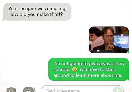 If you've run out of things to say, you can play games to pass the time. Games like Would You Rather, and Guess the Song/Lyric/Movie Title encourage both text members to participate. You can also try flirty games, like 20 Questions or Truth or Dare. If none of those games appeal to you, try issuing challenges, like "Let's see who can tell the corniest dad joke" or "Guess what this string of emojis is saying."