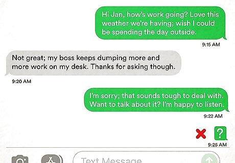 This shows that you've been listening to what they are saying and people love it when others actually listen to them. You may be too worried about what you’re going to say next or may be really excited to share your opinion about something to notice what the person you’re talking to is telling you. Maybe that person has a secret he’d really like to share, or maybe something is off and he’s clearly upset though he hasn’t said this explicitly. Pay attention to what the person is saying so you can respond appropriately. You don’t want to seem self-absorbed by ignoring signs that the person wants to talk or has something to share. If the person seems like he’s not telling you the full story, or if something really exciting happened to him, then give him his turn to speak. Carefully read over what the person wrote, especially if the message is really long, before responding. You don’t want to look like you’re only half listening when you ask a question about something the person just told you one minute ago. If the person is talking about something important and serious, then make sure you’re free to really engage with him. If your friend is telling you about her grandmother’s death, then you should call her and talk about it instead of half-answering her because you’re in math class.