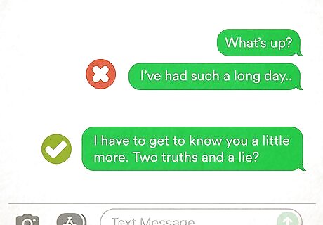 One thing you should keep in mind is that there should be a balance to the conversation. You don’t want the person to feel like you’re doing all the talking, or that you’re asking so many questions that he or she can hardly keep his or her answers straight. Just as in a real conversation, you should aim to do about half of the texting, and make sure to let the person share his or her ideas instead of being overwhelmed by yours. Remember that it’s more important to be interested than interesting. Instead of telling the person a million fascinating facts you learned that day, you’re much better off asking the person about his day, his ideas, or his experiences. People like talking about themselves more than you think.