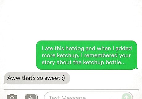 Much like people like to be complimented, they like to know that they've been in your thoughts. You can say something like: "I ate this hotdog and when I added more ketchup, I remembered your story about the ketchup bottle" or "This song came on the radio and it reminded me of you." It's nice to make people smile!