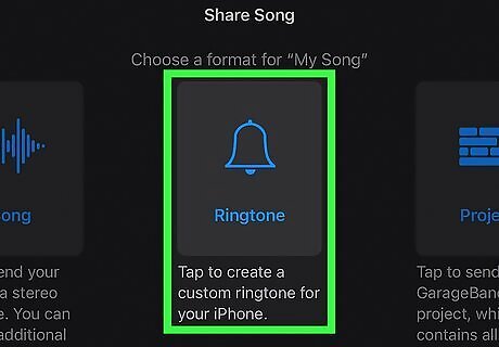 Tap Ringtone. This is the middle option with an icon of a bell and will export your project as a ringtone.