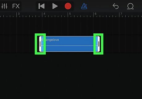 Trim the track. Tap the waveform and drag the yellow markers to trim your track. If you need to zoom in or out on the waveform, you can pinch or pull your fingers. The track must be under 40 seconds long to be a ringtone. Since GarageBand doesn't track time, you'll need to be able to figure out the timing of your clip using something else as a timer.
