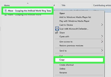 Copy your ringtone. Go to the folder in which you saved the ringtone, click the ringtone file to select it, and then press Ctrl+C (Windows) or ⌘ Command+C (Mac).