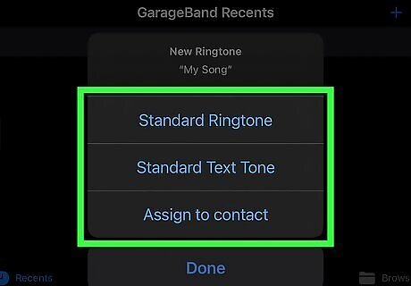 Tap an option for your ringtone. You can either use it as the default ringtone, a text tone, or a ringtone for a specific contact. If you don't want to set it, tap Done instead to keep your existing ringtone and save this project in your list of ringtones.
