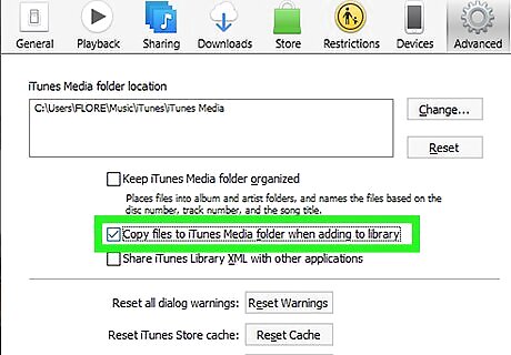 Select "Copy files to iTunes Media folder when adding to library". This will be next to a checkbox. By checking this box, iTunes will create a copy of imported files in the iTunes folder. The original file will remain untouched in its current location. If you want videos to appear in iTunes but stay in their original location, leave this checkbox blank.