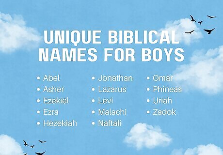 Get creative with uncommon boy names like Lazarus, Phineas, and Zadok. You've probably heard of many of the classic and modern Bible names, like Abraham, Joshua, and Mark. But there are so many other interesting names in the Bible that most people don't even know about or might have forgotten. Consider these unique options as you search for a meaningful, Biblical name for a boy. Abel: "Breath, vapor" Asher: "Blessed, happy" Ezekiel: "Strength of God" Ezra: "Yah helps"; "help" Hezekiah: "God strengthens" Jonathan: "God has given; gift of God" Lazarus: "God has helped" Levi: "Joined" Malachi: "My messenger, my angel" Naftali: "My struggle, my wrestlings" Omar: "Flourishing"; "long-lived"; "speaker" Phineas: "Nubian"; "bronze-colored one"; "snake's mouth" Uriah: "My light is Yahweh"; "flame of God" Zadok: "Just"; "righteous"