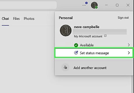 Select Set status message. This option has an icon of a circle with a pen overlapping it.
