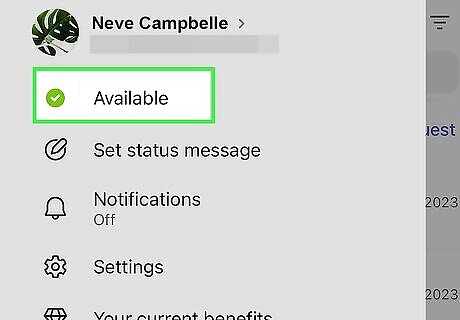 Tap your current status. It’s right under your name and profile icon at the top of the menu.