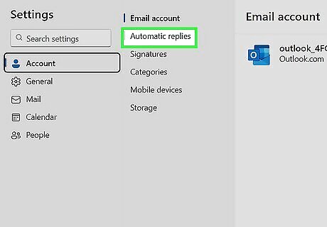 Select Automatic Replies. It’s near the top of the Account menu. In some versions of Classic Outlook, you’ll see this option when you open the File menu. If not, you won’t be able to set your out of office status this way. In Outlook for Mac, click Automatic Replies in the Email section of the Outlook Settings menu. If you have multiple accounts connected to Outlook, choose the one connected to your Teams account from the Accounts dropdown menu.