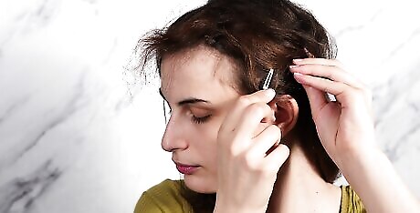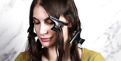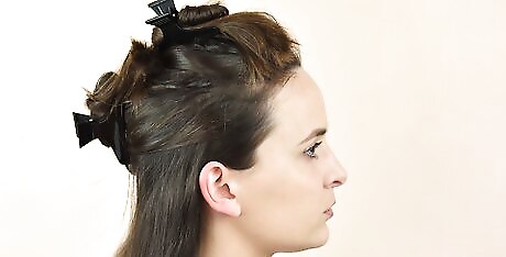 Divide the crown sections of your hair on either side. Use both hands to pull sections on either side of your crown back by making a circle as you move the hair back. Bring the 2 sides together and hold the hair from the crown. Secure the hair with a slip. For thicker hair, pick up a bigger crown section of hair.