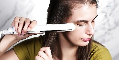 Wash and blow-dry your hair. Straightening your hair works best on freshly washed hair (or hair that has been washed in the last day or so). Once your hair is washed, dry it gently with a microfiber towel, spray it with a heat-protectant spray, and then blow-dry it with a hairdryer. This will help to pre-straighten your hair so you have less work to do with the straightening iron. Dry the roots of your hair with the hairdryer first; then work through the lengths of your hair. Master hair stylist Christine George suggests blow-drying your hair upside down to add more volume. Use a paddle brush to work through tangles and hold hair taut as you dry. Applying a heat protectant spray every time you straighten locks in moisture and prevents hair from becoming dry and frazzled. Apply the heat protection spray evenly over dry hair, holding the can about 6 inches away from your head. Don't apply the heat protection spray to your roots, as this can cause them to look greasy. Meet the wikiHow Experts Wyvetta Bowles is a beauty and hair care advisor who specializes in bridal and special event hair and makeup, hair care maintenance, and hairstyling techniques that lead to less damage. Christine George is a master hairstylist with over 23 years of hair styling and coloring experience. Noël Reid-Killings is a professional hair stylist with over a decade of experience. Noël specializes in curating and customizing hair solutions for all hair types and textures. Michelle Bebbington is a professional hair stylist with over 20 years of experience. She specializes in hair education, coloring, and styling. Steven Waldman is a professional hair stylist who uses unexpected sources such as art genres, architecture, and cooking to inspire shape, color, and cuts.