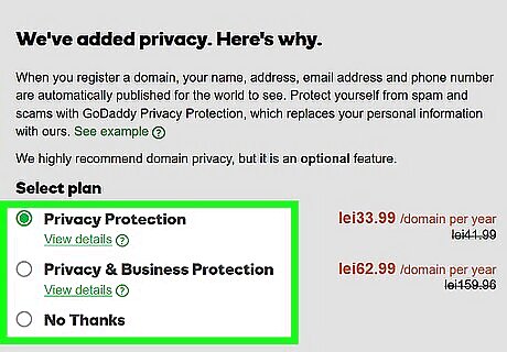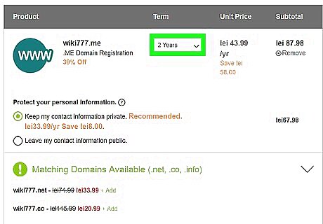 Enter how many years you want to pay for. Domain names need to be renewed on a regular basis, so you'll need to decide the number of years for which you want to register your domain. Typically, you can register a domain for up to 10 years at a time.