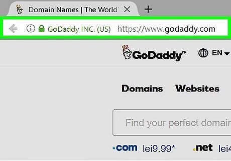 Open a web browser and go to a site that registers domain names. Popular sites include: GoDaddy.com Google Domains Register.com Squarespace