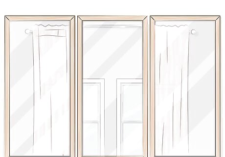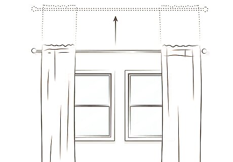 Higher curtains create the illusion of a higher ceiling. Install curtain rods close to the ceiling instead of right above windows and doors. Choose long, flowing drapes for an even grander feel. Standard walls are about 8 ft (2.4 m) tall, so use drapes that are 8–10 ft (2.4–3.0 m) tall if you want them to be really flowy. Use curtain tie-backs to create an elegant look surrounding the windows.