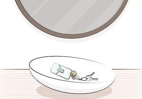 Using different textures gives a space a polished, professional look. If you have a leather sofa, add some fluffy or quilted cushions or blankets to it to balance out the smoothness of the leather. If you have a wooden entertainment center, add some metal accessories and books to it to make it more interesting and textured. Try to avoid combining things with the same finishes or textures. For example, if you have a metal coffee table, put a wooden bowl on it instead of a metal bowl.