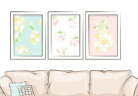 Inexpensive artwork can elevate the look of any room. You can find cheap art pieces at thrift stores, discount outlets, and garage sales. Choose a few big, bold pieces you like and hang them up around your house to give it a luxurious artistic appearance. For example, you might hang up a few colorful still life paintings of fruits, vegetables, and other ingredients in your kitchen or dining room. Or, you could find an old gold-framed portrait painting and hang it in your foyer to make a grand statement when people walk into your home. Chip and Joanna Gaines Chip and Joanna Gaines, Remodel & Interior Design Experts Curate your own interior design aesthetic. "Filling a room with the things you think you should because you’ve seen someone else do it that way, or because you just want it to feel finished, will never yield a home you truly love. You can make a room feel both beautiful and complete without filling every corner and surface with a bunch of random stuff."