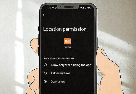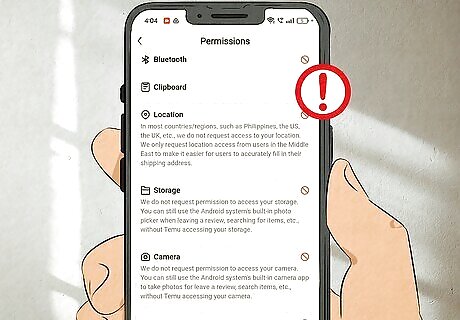 Only allow Temu the permissions it needs to function. When installing the Temu app, only give it permission to access functions of your phone that it needs to work properly. You can also review the app permissions you have granted it in the Settings menu on your device. Disable any permissions it doesn’t need, such as access to your microphone, camera, contacts, and location data. To review app permissions on Android, swipe down from the top of the screen and tap the Gear/Settings icon. Tap Apps. Then tap the Temu app and tap Permissions. Tap any permission you don’t want it to have and tap Don’t allow. To review app permissions on iPhone, open the Settings app and tap the Temu app. Tap any features you don’t want the app to access and tap the toggle switch to turn it off.