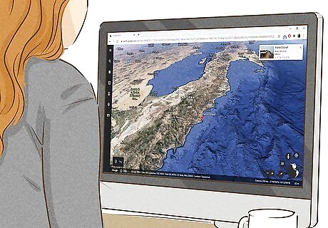 Use Google Earth to virtually scout an area. Google Earth is an interactive map you can use to explore locations all over the planet to help find great spots to take pictures. Visit the website and type in an area you want to search. Use the street view to see what the area looks like on the ground and navigate the area by moving around on the interactive map. Visit the Google Earth website at: https://www.google.com/earth/. You can also download the Google Earth app to explore and save locations on your smartphone or tablet. You could also use the MyMaps feature in the Google Maps app. When you find a location you like, write down or save the address so you can visit it to take pictures.