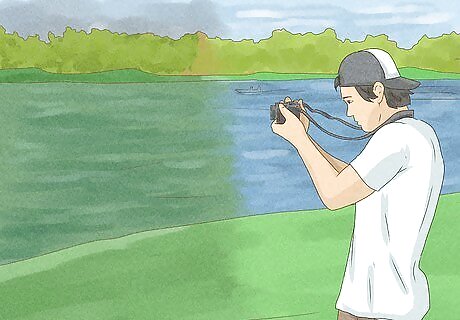 Drive or walk around an unfamiliar area and look for spots. The simplest way to search for photography spots is to get out in an area and explore it by walking or driving around. Head to areas you aren’t familiar with and just wander until something or a location catches your eye. Shoot a few photographs for reference later and write down or save the location so you’re able to find it again. If you’re walking around, try asking people you meet if they know of any great places to take photos. Be careful when you’re walking around unfamiliar areas, and let somebody know where you’re heading just to be safe.