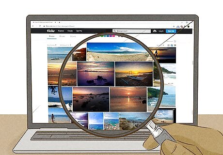 Visit a website that displays popular photo spots around you. Visit photograph sharing sites like Flickr or 500px and look up the area you want to shoot or a type of location. Search through the results and choose one that you like. Read the description to find out where the photograph was taken and use it to shoot your own photos there. For example, you could search for “mountain mist” or “Chicago skyline” and look through the images to find locations you like. Search for online photography networks and databases you can use to find images you like. Some sites, like Flickr and 500px will require you to make an account in order to access the image database.