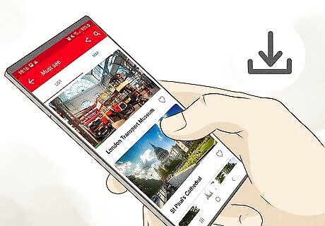 Download and use an app that shows you potential spots. Visit your smartphone or tablet’s app store and search for apps designed to help photographers find locations. Download the app and use it to search for great spots in a specific area. Find the locations of photographs that you like and use them to take your own photos. For instance, if you’re looking for spots in London, you could look up something like “London cityscape” and search through the locations listed to find one that you like. Popular photography location apps include NoFilter App , and Pixeo.