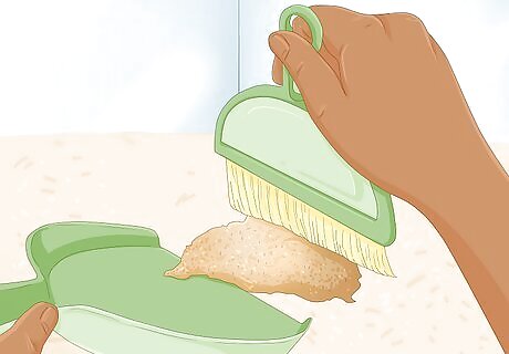 Replace the substrate every 6 months or so. Dirty substrate can lead to mold which can be harmful to your hermit crabs. Change it every 6 months or whenever their habitat starts to smell a little questionable. If you see mold or you spot a mite infestation, change the substrate ASAP. In between substrate cycles, spot clean any dung and food the crabs have dragged from the food bowl or buried. Never clean the substrate when your hermit crab is molting. You should never disturb or move a molting crab.