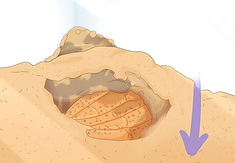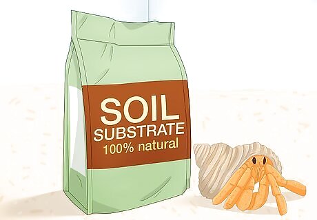 Fill the habitat with a substrate of kid’s playsand or cocofiber. Hermit crabs are diggers, and they’ll spend a lot of time under or in the substrate you choose. As such, pick something fine and safe. Your two best options are the playsand designed for small children, coconut fiber, or a mix of the two. Cover the bottom of your tank with substrate. Many crabs also like to bury and even molt in damp reptile moss. Aim to keep the substrate depth 3 times the height of your biggest crab. So, if you estimate your biggest crab is 3 inches (7.6 cm) tall, keep the substrate 9 inches (23 cm) deep.