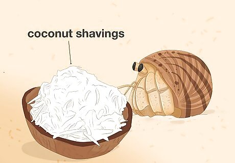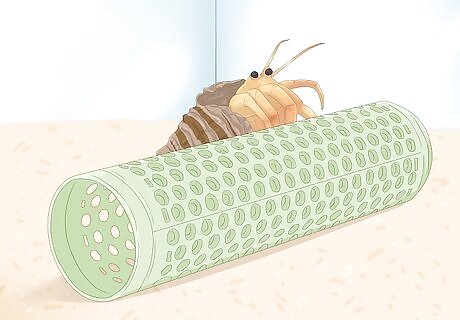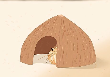 Provide your hermit crabs with plenty of hiding places. Hermit crabs, like most animals, need a place to feel secure and hide when they feel threatened. You can use a half coconut shell that they sell at pet stores for small crabs, or use broken pots, large shells, etc. Just make sure that the crab won't get stuck inside.