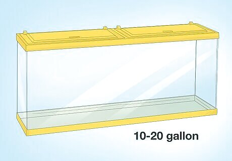 Get a glass tank that’s 10 US gal (38 L) for every 2 crabs. So, if you have 6 hermit crabs, they’ll need at least 30 US gal (110 L) of space. A proper home for your crabs should hold humidity but still let in fresh air, so a fish tank or reptile aquarium usually does nicely. You can even rinse out that old leaking tank from the attic and use it! Acrylic terrariums tend to work too. If the hermit crabs are on the larger size, opt for a bigger tank than necessary. Hermit crabs like having plenty of space, so bigger is always better with the habitat. You can theoretically even keep your crabs in a big plastic bin, if you’re really short on materials.