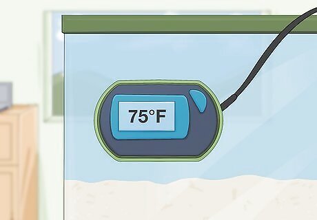 Keep the temperature roughly 75–85 °F (24–29 °C) at all times. Hermit crabs are tropical animals who prefer warm temperatures. Attach a tank thermometer to your crabs’ home to monitor the temps. Use an under-tank heater designed for hermit crabs, or set the tank in a part of your home that stays perpetually warm, too. Heat damage is irreversible, and temperatures that are too low can slow down a crab's metabolism, so maintaining a stable temperature is essential.