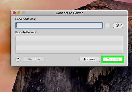Enter the address of the server that hosts the folder. This may be an IP address or host name, depending on your network. If you see the server listed under “Favorite Servers,” click it once to select it.