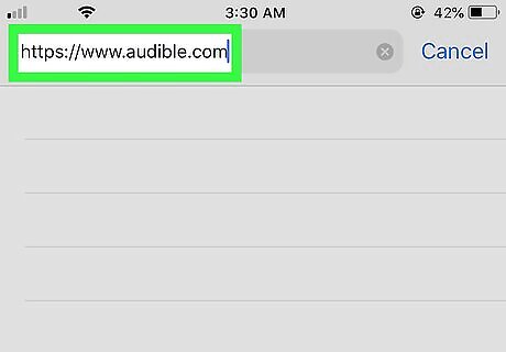 Navigate to https://www.audible.com. To do this, type www.audible.com into the address bar at the top of the browser, then tap the Go key on the keyboard.