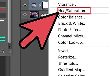 Click the Create Adjustment Layer icon and select Hue/Saturation…. The Create Adjustment Layer icon is the half-shaded circle at the bottom of the Layers panel. You'll also find the Hue/Saturation tool at Image > Adjustments > Hue/Saturation, or by pressing Ctrl + U (PC) or Command +U (Mac).