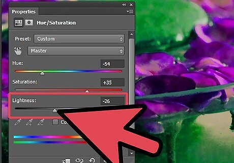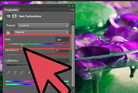 Move the Hue slider left or right. The adjustment layer should be beside your image file. By moving the Hue slider, you will be able to see the gradual change of colors on your image.