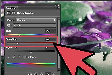 Experiment with the Saturation slider. Drag the slider to the left for a lesser amount of color on the picture or for a duller gray image, or right for more vibrant colors.