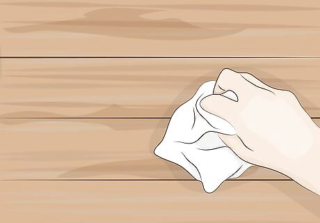 Wipe up any oil remaining on the wood. Go back over the wood with a dry rag. Note any spots where the oil looks thick, wet, or pooled. Scrub the wood along the grain again to absorb the oil. When you are finished, the wood should look dry with a matte finish. The finished wood should look dark and even. Spots that look wet or shiny have excess oil.