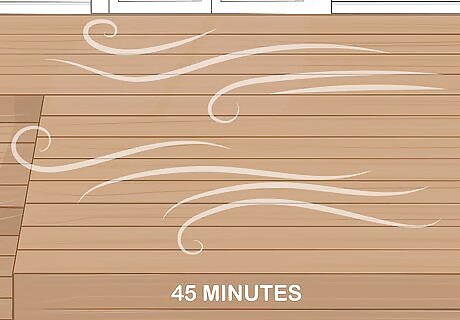 Let the oil dry for 45 minutes. Once you have removed as much excess oil as possible, give the oil time to soak into the wood. Wait at least 30 minutes and no more than 45 minutes. After 45 minutes, the remaining excess oil may dry up and become difficult to remove. The soaking time can vary a little depending on the weather. It will dry slower in cooler temperatures.