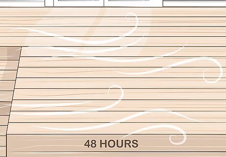 Dry the deck for up to 48 hours. The wood needs to dry fully before it can absorb the oil. This will take at least 1 day, although you should wait 2 days to make sure. Check that the wood is dry to the touch before you continue. Wet wood leads to water stains underneath the oil, so wait for the deck to dry completely.