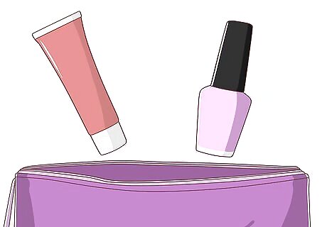 Collect all your makeup and accessories. Makeup and accessories aren't essential, but useful. Keep them with your toiletries or have your own makeup bag. Don't bring a whole lot of makeup, just the essentials. Here's a list of all the makeup you need: Lip balm and lip gloss. Hand cream. Nail polish. Makeup for makeovers.