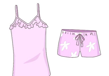 Have three cute, cool outfits with you. You need casual clothes, pyjamas for hot nights and pyjamas for cold nights. Take both pyjamas with you. It's better to pack cute, cool, girly outfits if you want to look nice - it's much better to pack girly, cute, cool clothes. Here are some examples of cute, cool, girly outfits: Casual clothes - a camisole, t-shirt or jumper, skinny jeans, bootcut jeans or leggings, socks, trainers, ballet flats or sandals and a cardigan or hoodie. PJs for warm nights - a camisole, tank top or t-shirt, leggings, shorts or tracksuit bottoms. PJs for cold nights - a long sleeved top or jumper, leggings or trackies and fluffy socks.