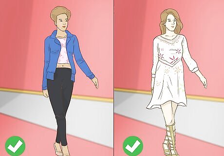 Wear your most stylish and comfortable shoes. Make sure you wear very comfortable shoes, such as flats or stylish sneakers, when volunteering because you’ll likely be on your feet all day and running from place to place. Once you know the dress code, start looking for comfortable shoes that fit the requirements as soon as possible. Gel inserts can also help keep you comfortable all day!