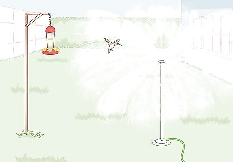 Get a mister for your yard or garden and place it near the feeder. A mister attaches to a regular garden hose and will spray a fine mist into the air. Hummingbirds love to fly through the mist before they rest to preen. As a plus, you’ll get to watch the birds play in the mist! You can buy a mister at most garden or lawn-care stores.