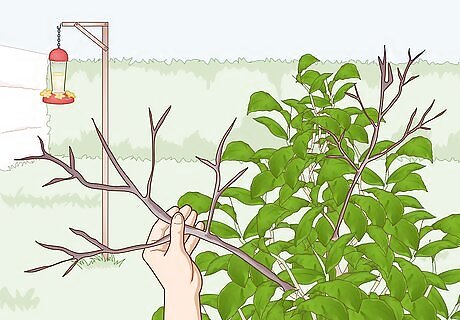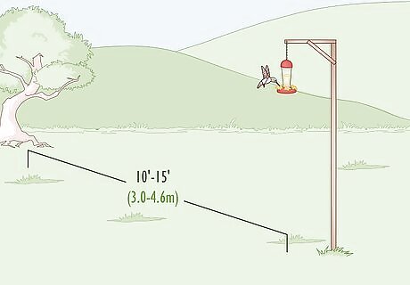 Provide a "snag" perch near the feeder for the hummingbirds to rest. Hummingbirds like to rest at the end of an exposed branch so they can see any rivals or predators approaching. Make a snag perch by inserting a dead branch into the ground so it stands upright. Put it somewhere within viewing range of the feeder or within 50 feet (15 m). Hummingbirds' wings beat 80 times per second—they'll be happy to stop and rest if you provide a good perch!