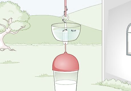 Buy a feeder with an ant moat to keep ants out of the nectar. Ant moats are bowls filled with water that are located above or near the center of the feeder. It will trap ants that are trying to get to the nectar. As a plus, hummingbirds love to eat ants for protein and will appreciate the additional snack! If you live in a hot, dry area, the water in the ant moat may evaporate quickly so you may need to refill it every other day. If your feeder doesn’t have an ant moat, you can also apply petroleum jelly to the chain above the feeder.