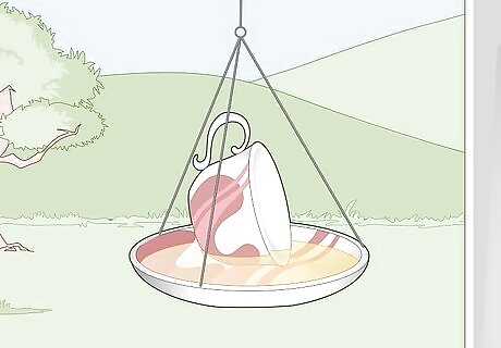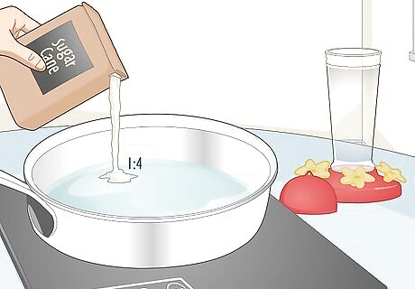 Provide hummingbirds' favorite food of 1 part cane sugar to 4 parts water. Depending on the size of your feeder, stir together sugar and water until the sugar is dissolved. To kill bacteria and keep it from spoiling too soon, bring the sugar-water mixture to a boil and let it cool before putting it in the feeder. Don’t use honey, artificial sweeteners, turbinado sugar, raw sugar, powdered sugar, organic sugar, or brown sugar. Spring water is best, but tap water will do—don’t use distilled water. While it’s common to add red food dye to the nectar to make it more attractive-looking, it’s best to avoid doing this because it could potentially harm the hummingbirds. Refrigerate the excess sugar water in an airtight container for up to 7 days.